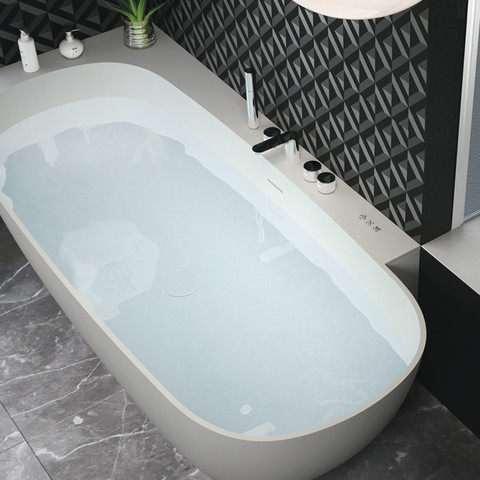 The Calle hydromassage bathtub by Gruppo Geromin is crafted from Tecnotek, an innovative material known for its durability and sleek finish. Available in oval or rectangular shapes, it offers Whirlpool, Airpool, and combined systems, featuring chromotherapy and ergonomic design for a luxurious bathing experience.